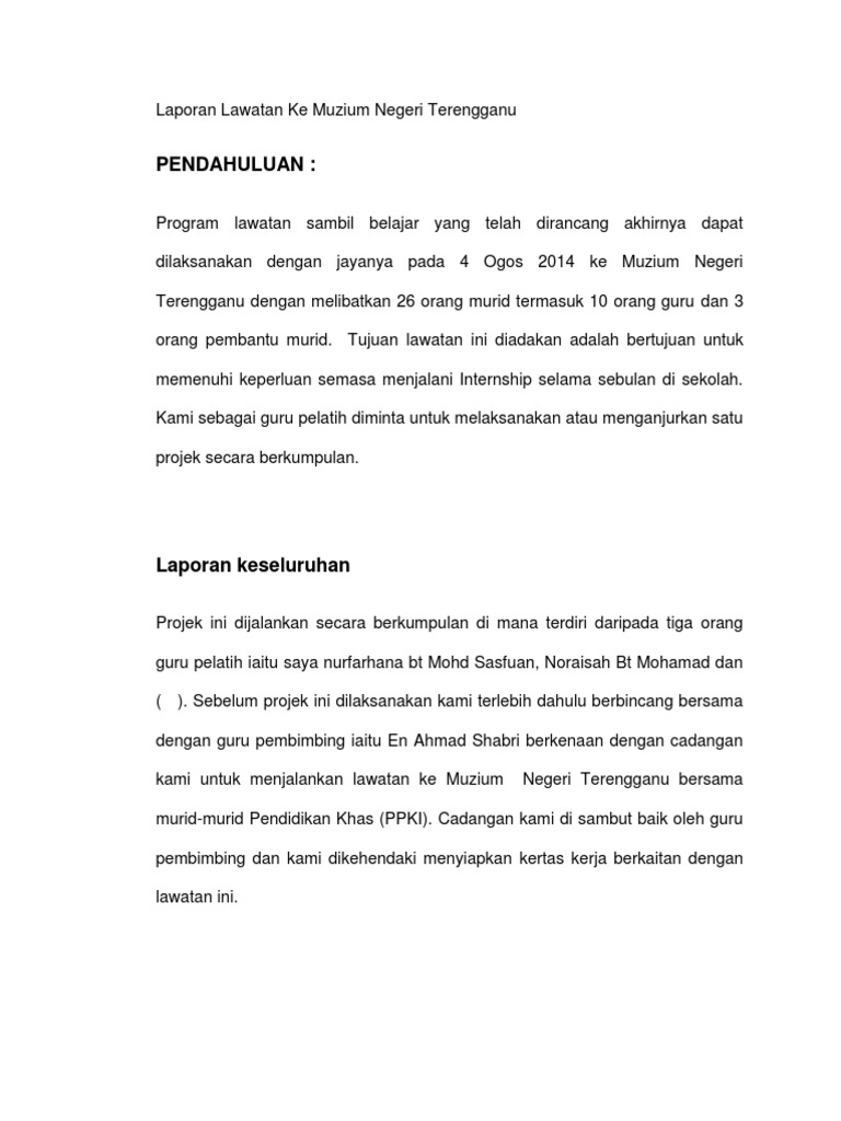 Pada cuti penggal kedua yang lalu, persatuan bahasa malaysia, sekolah menengah tanjong karang, selangor telah mengadakan lawatan sambil belajar ke muzium negara. So please help us by uploading 1 new document or like. Laporan lawatan sambil belajar ke muzium negara mp3 & mp4. Lawatan ini diadakan pada hari sabtu, 26 mac 2016 pada jam 6. Satu lawatan sambil belajar akan diadakan pada bulan april depan ke pusat perkembangan bahasa, universiti islam antarabangsa. Laporan lawatan ke muzium negara nama : Mubin aka lain kali nak jual brg tgk ebay check harga market berapa 4. Wang bantuan makanan asrama lawatan sambil belajar ke shah alam dan melaka tengaharimakan malammakan petangminum malamminum sarapan kadar jumlah tuntutan rm 2.00 rm 4.00 rm 1.30 rm 4.00 rm 1.20 jumaat √ √ √ √ rm 10.50. Majdi aka hero mas 3. We are a sharing community. Thomas albechien subjek : Pada cuti penggal kedua yang lalu, persatuan bahasa malaysia, sekolah menengah tanjong karang, selangor telah mengadakan lawatan sambil belajar ke muzium negara. 5hb april 2009, ahad list;