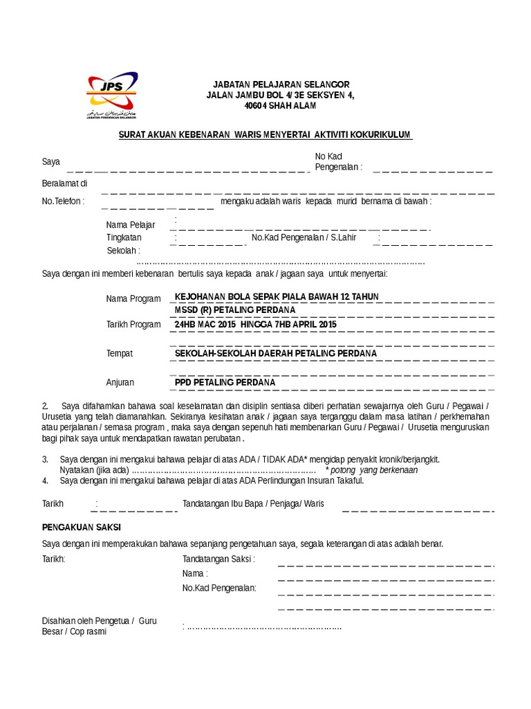 Related : Surat Akuan Kebenaran Ibu Bapa/Penjaga Menyertai Aktiviti Kokurikulum - Surat Kbenaran / Memantau dan memastikan aktiviti kokurikulum berjalan seperti mana dalam perancangan aktiviti dalam buku laporan aktiviti kokurikulum..
